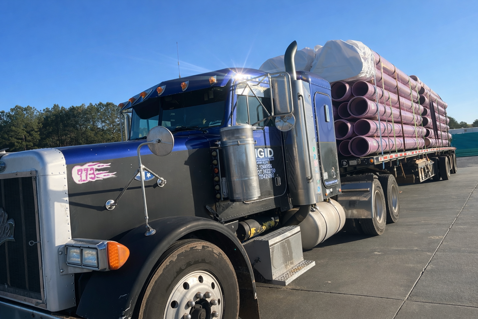 Operating in all 48 contiguous states, RIGID Transportation is a reliable partner for owner-operators and brokers needing point-A-to-point-B transport for essential freight — steel pipe, lumber, oilfield equipment and more.